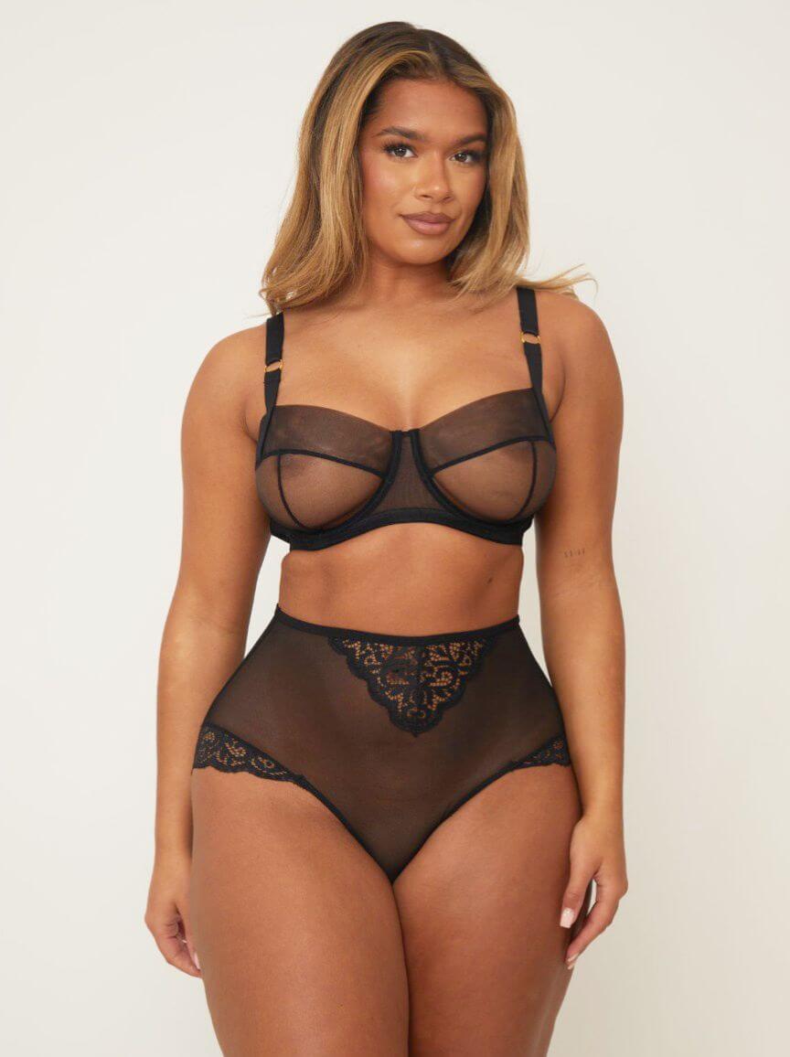 This Raya Set in Midnight Black is effortlessly elegant with sheer mesh cups, a keyhole back and everyday coverage creating the perfect balance of sophistication and sexiness. It's finished off with a cute Tutti Heart Slider for a playful touch – delightfully daring!