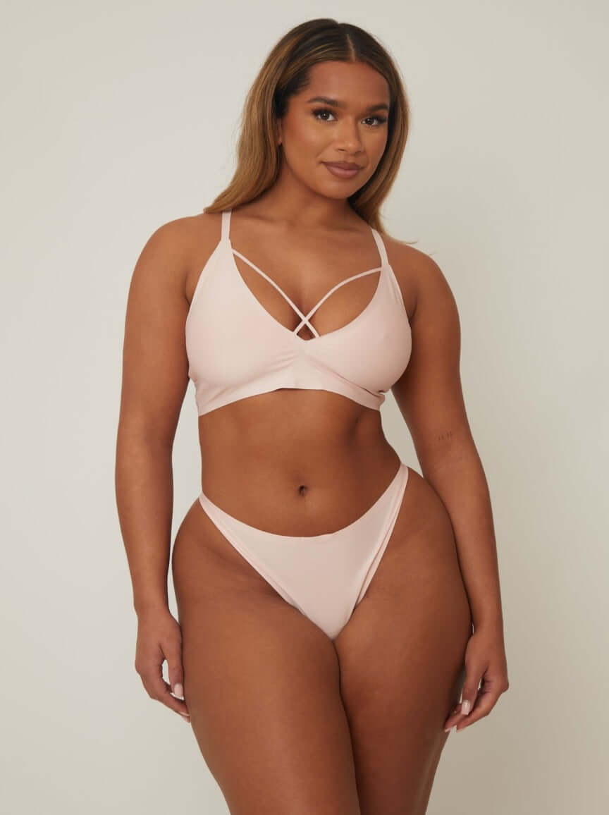 Soft, sleek, and simply stunning — the Remi Bralette & Brief Set is your new everyday essential with an irresistible twist. Designed in a delicate blush tone, this minimalist duo combines smooth stretch fabric with flirty strapping to give you comfort, confidence, and all-day style.